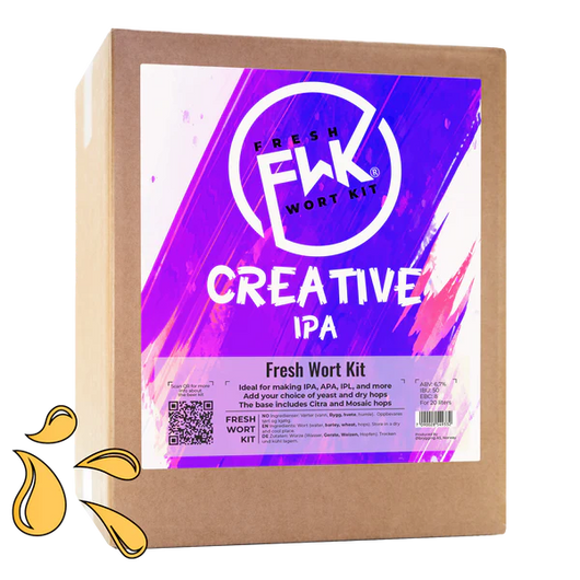 FWK Creative IPA! Čia jums suteikiame galimybę sukurti savo IPA, APA, IPL ar bet ką kitą, remiantis paruošta misa. Jūs renkatės, ką daryti toliau: sausą apynių įdėjimą, mieles ir bet kokius kūrybinius triukus. Skatiname eksperimentuoti!
